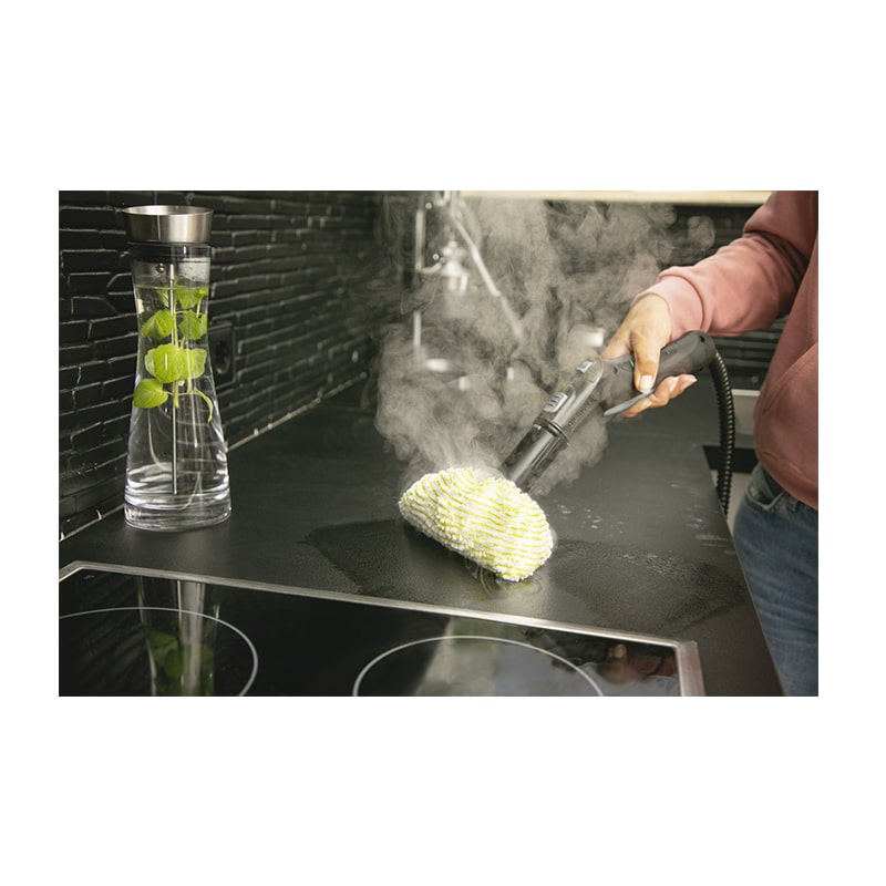 | Accessoires | Chiffon de nettoyage de sol universel EasyFix – Housse en microfibre pour buse à main – 3 Poudres détartrantes – Buse de détail – Buse à main – Brosse ronde, petite (noire) – Buse de sol EasyFix – 2 Tuyaux à vapeur de longueur 0,5 m |
